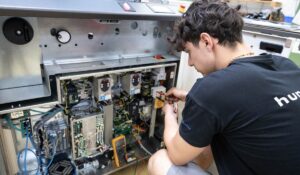 Deine Ausbildung im dritten und vierten Lehrjahr variiert je nach Schwerpunktausbildung: Modulmontage, Automation oder Entwicklung und Versuche. In der Modulmontage baust du Hunkeler Maschinen zusammen, verkabelst diese und nimmst sie anschliessend selbst in Betrieb. Bei der Automation vertiefst du dein Wissen und begleitest Servicetechniker bei Kundeneinsätzen. Die Fachrichtung Entwicklung und Versuche ermöglicht dir die Mitarbeit an Prototypen und Neuentwicklungen in der Entwicklungswerkstatt.