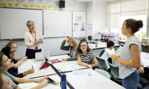 Unsere Lernenden stellen den Schüler/-innen die Berufe vor, die man bei uns lernen kann.